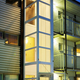 Unser Newcomer! Der Vertikallift UnaPorte® kann durch minimalste Eingriffe an vorhandenen Baustrukturen nachgerüstet werden. Perfekt geeignet für geringe Höhendifferenzen bis zu 3m.