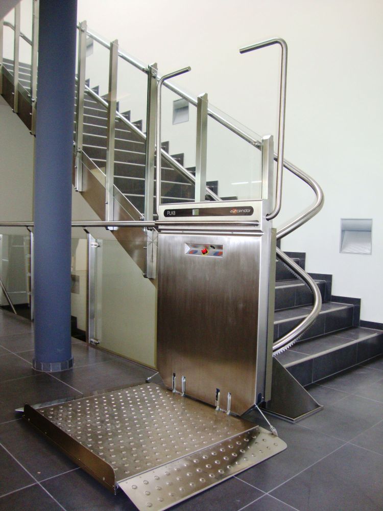 Die ideale vertikale Aufstiegshilfe für Rollstuhlfahrer. Der Plattformlift kann nachträglich im Innen- sowie Außenbereich installiert werden. Ideal auch zum platzsparenden Einbau in Treppenhausaugen, auch auf engsten Raum möglich. Diese Form von Liften benötigen kaum bauliche Veränderungen oder einen Maschinenraum. Lediglich 12 cm Bodeneinlass genügen um ein flächenbündiges Betreten des Liftes zu ermöglichen.
